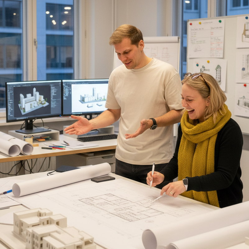 Über Ihr Büro vermittelt, arbeiten Sie temporär an spannenden Projekten bei anderen Architekturbüros und erweitern Ihre Erfahrung.